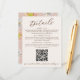 Enhance your wedding suite with our beautifully crafted Details Enclosure Card. This card seamlessly combines modern elegance with a touch of whimsy. The front provides ample space for all the essential information, while the back is adorned with delicate watercolor flowers in shades of pink, peach, and white. Perfect for sharing venue details, accommodation options, and more, this card ensures your guests have all the information they need in a charming and stylish manner. You can even add a QR code to easily direct questions to your RSVP page or wedding website.