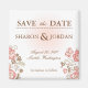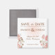This blush save the date magnet with its pink and green floral doodles would be perfect for a feminine, whimsical wedding.