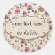 Beautiful, whimsical pattern with pink flowers on curling and swirling stems with bright green leaves on a light beige background. The frame is the perfect place to personalise this product with you name or a short message.