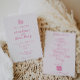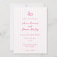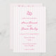 Whimsical handwritten Cerise Pink, wedding invitation. Template features, hand drawn wedding rings doodle, light pink stripe background, and details template on back.