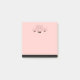 Sticky notes with a drawing of a cute pink pig's face. Wearing a black bow tie. Lifted up by his black cloven hooves and peering over a table. Cute and whimsical drawing. Set on a pink background with some faded hearts here and there.