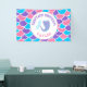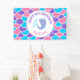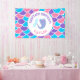 Set the tone for your little girl's birthday party with this whimsical mermaid tail design! The tail illustration pops with pretty shades of pink, blue and purple. The background features a matching pattern of scales in the same colours. It is the perfect visual centerpiece for an under the sea celebration.