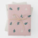 Whimsical Pink Scandinavian Christmas Botanical Wrapping Paper Sheets
