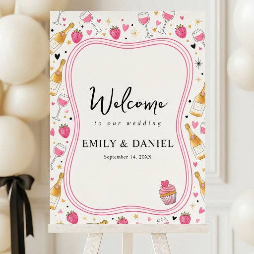 This charming menu background features a playful strawberry pattern on a soft, light backdrop, creating a sweet and romantic wedding aesthetic. The hand-drawn strawberries and heart accents add a whimsical touch while keeping the layout clean and elegant for easy menu readability. Perfect for strawberry-themed weddings, pink romantic celebrations, and modern receptions that blend fun details with refined style.