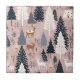 A ceramic tile illustrated winter landscape in a dreamy pink palette, featuring rolling blush-toned snow hills, elegant deer with golden antlers, and a mix of pink deciduous trees and deep blue evergreens. White-and-gold fantasy towers rise in the distance, adding a magical storybook feel. Falling snowflakes, snowy shrubs, and soft color contrasts create a modern, whimsical winter aesthetic