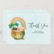 Thank you card with an adorable illustration featuring a smiling green and gold pot with a cute rainbow,
