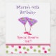 Fun full size birthday wine labels, done in white, with pink and green polka dots, on the bottom and cute graphics of purple bar glasses with polka dots. Personalise the purple and pink text for your special day.