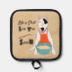 Whimsical pot holder says it's ok to lick the spoon. Features Rex the TV Terrier ready to help.