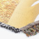 A quality printed throw has its advantages. This is a much finer weave throw than its loopier cousins, and though lighter, it is worth the investment for custom room accessorizing. The back is much prettier than the typical brown, and the fringe on the long sides very vivid, the selvage nicely done. Before photographing, I washed the throw in cold water, delicate, with a thicker woven throw the same size. On tumble dry low, this throw was dry in half the time as the other. This is a very practical quality if you use throws for furniture covers or to wrap up in frequently. The sleekness of the fabric makes it a great layer for accenting or protecting without the feeling of sitting on too much stuff. Perfect for napping or when you feel a light chill coming on. The color printing is beautiful and on this fabric, matched the design and color of my Photoshop image. This is an advantage for blending room fabrics and colors. The fringe on the short sides prints the colors from the design image and therefore varies from the side fringe. I streaked a white fractal line through the plaid pattern to give the illusion of weaving. This printed as crisp as an illusory thread, and put some white in the short side fringe, showing another advantage of print vs loomed- for artistic purposes, line lines, detail, and color integrity can be planned and preserved. My loomed throws have color limitations and more of a needlepoint texture. Print throws reproduce an exact image. The throw felt a little stiff straight out of the package, but this went away in the first delicate wash. Of course I searched the wash water for ink or bleeding and there was none.
