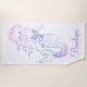 Whimsical Purple Pastel Rainbow Mermaid with Name Beach Towel