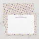 Note card featuring a seamless pattern of purple sunflowers and leaves paired with a white square where your personalised monogram is written in a sans serif font. You can find more background colour options in our store.