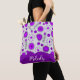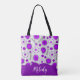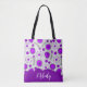 Whimsical purple white hearts flowers floral name tote bag