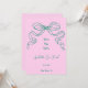 A trendy whimsical hand drawn scribble style wedding save the date invitation card following the latest trend in wedding stationary. Featuring a hand drawn bow and a sage green and pink colour scheme and a handwritten font style. The perfect quirky invitation for a fun casual wedding.