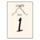 Whimsical bridal shower table number featuring a beautiful hand-drawn bow in a fun and playful style, accompanied by a casual, handwritten font that perfectly captures the excitement and joy of the occasion.