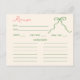 Whimsical quirky pink and green bridal shower recipe card with a hand drawn bow.