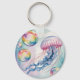 Whimsical Rainbow Jellyfish Watercolor Design Key Ring