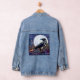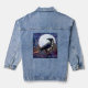 Whimsical Raven Moon Floral Black White Blue Denim Jacket