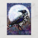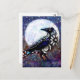 Whimsical Raven Moon Floral Black White Blue Postcard