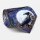 Whimsical Raven Moon Floral Black White Blue Tie