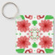 Whimsical Red Flowers Green Leaves On White Art Key Ring