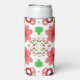 Seltzer Can Cooler Koozie Sleeve printed with Whimsical Red Flowers Green Leaves On White Art fun digital graphic Illustration design with soft translucent and solid colours by TheFabricSeal print on demand shop at Zazzle.com #ZazzleMade ©️Original. https://www.zazzle.com/store/thefabricseal