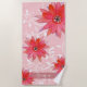 Whimsical Red Flowers Swirly Leaves Pink Beach Towel. Personalise this elegant Beach Towel with your name.
