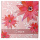 Whimsical Red Flowers Swirly Leaves Add Name Pink Tile