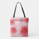 Whimsical Red Flowers Swirly Leaves Pink Tote Bag. Personalise this elegant Tote Bag with your name.