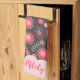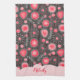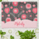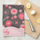 Whimsical red grey hearts and flowers floral name tea towel
