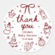 Whimsical Red Hand Drawn Christmas Baby Shower Classic Round Sticker