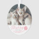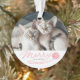 Cute Christmas ornament for cat owners featuring your custom pet photo with a red hand lettered script that says "merry" with a string coming out of a yarn ball. Customise this product by adding your cat's name.