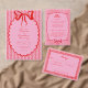 Whimsical Red Pink Watercolor Bow Stripe Wedding Invitation