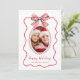 Whimsical Red Wavy Frame Bow Photo Christmas Holiday Card