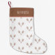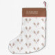 This cute Christmas stocking features a pattern of whimsical reindeer faces in soft earth tones on a white background. Click "Personalise this Template" to easily change the featured name. This whimsical stocking, with its neutral colour palette, makes it a perfect addition to your boho themed Christmas decor.