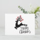 A whimsical leaping reindeer with glowing antlers modern Christmas holiday card graphic design. For a contemporary minimalist digital illustration style in red, black and white. A simple silhouette with script typography.