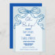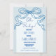 Whimsical Retro Blue Hand Drawn Bow Baby Shower Invitation