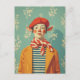 Whimsical Retro Christmas Elf Holiday Postcard