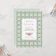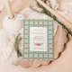 These stunning, vintage style winter holiday wedding shower or bridal shower invitations feature a colourful, whimsical Christmas design. A bright red bow is surrounded by watercolor green botanical foliage, and a matching retro holiday pattern with a light green background makes up the outer frame.