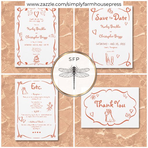 Whimsical Retro Hand Drawn Sunset Orange WeddingDesigned by Kathe Santillo