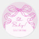 Whimsical Retro Pink Hand Drawn Bow Baby Shower Classic Round Sticker