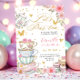 This adorable design features watercolor tea cups with pink floral and faux gold glitter embellishments.