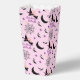 Fly into the spookiest season with this charming and whimsical seamless pattern! This design features a classic silhouette of a witch soaring on her broomstick, with the playful, hand-scripted phrase "Run Away With Me" floating below. The witch is set against a dreamy, light lavender background and accompanied by a flurry of black bats, mystical crescent moons, and delicate spiderwebs.