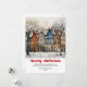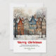Whimsical rustic Christmas scene bright city art Holiday Card