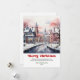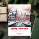 Whimsical rustic Christmas scene bright city art Holiday Card