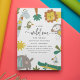 Welcome to the jungle! Embark on a whimsical safari adventure with our 'Wild One on the Way' baby shower invitation. This vibrant, colourful design is graced with playful jungle animals on a crisp white backdrop. Accompanied by elegant calligraphy script, you can easily personalise this template to create an unforgettable introduction to your little explorer's arrival. Perfect for those seeking a joyful, unique way to announce their special day!