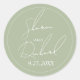 Whimsical sage green script calligraphy wedding classic round sticker
