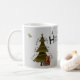 This whimsical mug has Santa Claus with Rudolph standing next to a Christmas tree with presents under it. There's also a birdhouse and primitive style red cardinal bird. It says Happy Holidays and there are stars in the sky. This would make such a wonderful gift for someone filled with chocolate Kisses or hot cocoa packets or Christmas mints. Great for teachers, babysitters, coworkers and more!
