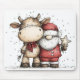 Whimsical Santa & Moo-Moo Holiday Christmas Cheer Mouse Pad
