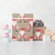 A cute Christmas wrapping paper featuring a pattern of whimsical Santas. Shown here with a taupe background, you can edit the background colour by choosing the "customise it" button and selecting a different colour.