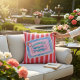 Bring a smile to your face with this whimsical throw pillow featuring a charming illustration of a vintage sardine tin. The design showcases two adorable blue fish peeking out from their pastel blue packaging, accented with playful stars. This graphic design is printed on a vibrant background of alternating red and light pink stripes, creating a fun and energetic look. It’s an ideal accent for a kitchen, den, or any room that could use a touch of playful, retro-inspired decor. This pillow is a fantastic way to express your unique style and add a dash of unexpected charm to your living space.